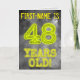 På framsidan av den här örren tittar anpassadets födelsedagskalender med texten "48 ÅR gammal!" med tecken och siffror som har ett glansigt glansigt utseende som inspirerats av en mystisk grått grumlig, dimmig bakgrund mönster. På framsidan finns också en mottagare av anpassadet namn. Insidan innehåller ett meddelande om anpassadets födelsedag hälsning. Ett anpassat födelsedagskalenderkort som detta kan vara ett speciellt sätt att skicka ett födelsedagsmeddelande till någon som firar sin 48-årsdag. [~Z0000365]