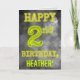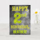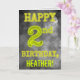På framsidan av den här tittar hälsningskortet med anpassadets födelsedag visas meddelandet "LYCKLIG 2:a BIRTHDAY" med tecken som har ett mystiskt glänsande utseende på en fläckig grått grumlig, diminspirerad bakgrund mönster. På framsidan finns också en redigerbar mottagare av namn. Insidan innehåller ett hälsning-födelsedagsmeddelande som kan vara personlig. Ett sådant här hälsningskort för personligens födelsedag kan ges för att fira någons andra födelsedag. [~Z0000364]