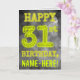 Framsidan av denna mystiska tittar, personligens födelsetecknade hälsningskort, innehåller meddelandet "LYCKLIG 31a BIRTHDAY" med tecken som har ett glansigt glansigt utseende, på en härlig grått grumlig, diminspirerad bakgrund mönster. På framsidan finns också en mottagare av personlig namn. Insidan innehåller ett anpassat hälsning-födelsedagsmeddelande. En sådan här hälsningskort för anpassadets födelsedag kan ges till någon som firar sin trettioförsta födelsedag. [~Z0000364]