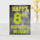 På framsidan av denna tittar, redigerbara, födelsematematiska hälsningskort finns meddelandet "LYCKLIG 8:e BIRTHDAY" med tecken som har en mystisk glänsande aura-utseende, på en grumlig grått-grumlig, diminspirerad bakgrund mönster. På framsidan finns också en redigerbar mottagare av namn. Insidan innehåller ett hälsning-födelsedagsmeddelande som kan anpassas. Ett anpassat födelsedag som detta kan ges för att fira någons åttonde födelsedag. [~Z0000364]