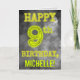 På framsidan av denna tittar, redigerbara, födelsematematiska hälsningskort finns meddelandet "LYCKLIG 9th BIRTHDAY" med tecken som har ett glansigt glansigt utseende, på en mystisk grått grumlig, diminspirerad bakgrund mönster. På framsidan finns också en mottagare av personlig namn. Insidan innehåller ett hälsning-födelsedagsmeddelande som kan anpassas. Ett sådant här redigerbart födelsedagskalenderkort kan vara ett speciellt sätt att skicka en födelsedag hälsning till någon som firar sin nionde födelsedag. [~Z0000364]