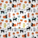 Cute och spooky Halloween mönster med katter, spöken, zombikatter, pumpor, döskallar, spindlar och häxor. Anpassa bakgrunden till färg. Originalkonst av Nic Squirrell.