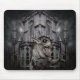 Ett hemsökt hus bevakat av en demon på en coola-musmatta för Halloween eller när som helst.