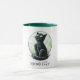 Det här anpassadet "Halloween", det temade mugg-tecknet, har en svartvit katt som står framför måne med personlig.