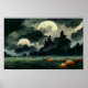 En coola mystisk målning av ett skämtlandskap med pumpor för Halloween.