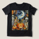 Den här Halloween-designade t-shirt-skjortan har en läskig bild med jack-o'-lyktor, skelett med mera. Den visas på en svart t-shirt, men andra färg och stilar kan välja perfekt T för dina Halloween-behov. Bilden är AI-genererad med designriktning av Susang6.