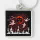 Spooky Halloween Night Full Moon Pumpkin Scene Fyrkantig Silverfärgad Nyckelring