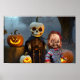 En unik skrämmande poster-design för Halloween som också finns på Halloween-inbjudningar, pappra tallrikar och mycket annat. Det kan också överföras till 1 000-talet andra produkter. Varför inte ett skapande tema för en verkligen och ett minnesvärt party.