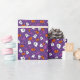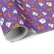 A cute hand drawn illustration of festive blend of ghosts and pumpkins on a vibrant purple background, evoking a playful Halloween spirit.