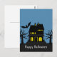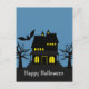 Roligt Spooky Haunted House Halloween Postcard med ett hemsökt hus inkapslat mellan två gamla och vidgade träd och en ensam fladdermus som flyger i förgrunden. Detta vykort för coola är ett underbart val för att önska en vän eller familjemedlem till Happy halloween! Så enkelt att anpassa, lägg bara till den personlig du väljer. Klicka på knappen "Anpassa" om du vill ha fler anpassningsalternativ.