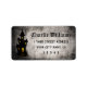 Halloween return address labels featuring a haunted house on a gritty background with your name and return address to the right.