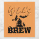 Spooky Haunted House & Witch Silhouette | Vinflaska Etikett
