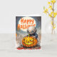 Det här unika Happy halloween-kortet är ett exempel på en eländig liten vampyr. Du kan anpassa alla tillgängliga alternativ och redigera den text som du vill ha.