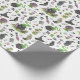 Spooky Halloween-höljet pappert har en mönster av bubbelkauldron, potioner, häxhattar, svarta katter, kråkor och kristallint bollar.