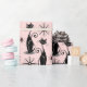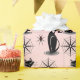 Min ursprungliga vektorillustration av sömnsvarta rullkatter, spindelnät och spindlar, i svart, benvitare och grått, på rosa, med en simulerad vävnad av struktur.