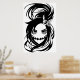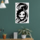 Svartvit konst av ett ungt pookymonster dam med svart hår. Det här är en AI-skapad konst.