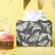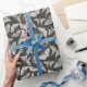 Spooky Halloween-höljet pappert har en mönster av vita månar på en mörk med rökig bakgrund.
