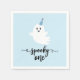 Spooky ett sött spöke Halloween 1-födelsedagslånga papper napkin. Modern Halloween-temad design för en scoky party! Den här födelsedagskalan har ett lycklig-spöke med blå party-hatt med baby blue bakgrund.