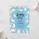 Cute halloween-temepojkens första födelsedagsinbjudningskort med illustration av söt spöken och stjärnor på blå bakgrund. I texten står det: "XX är en Spooky One".