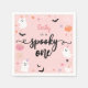 Spooky en Halloween-söt spöke 1:a födelsedag papper napkin. Modern Halloween-temad design för en scoky party! Den här födelsedagskalan har spindelns websar, spöken, pumpor, fladdermus, spindlar, löv, maj, stjärnor och daisy. Den här napkin är underbar för födelsedagsfester till en liten flicka!