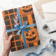 Spooky Orange och Black Checkered Halloween Patter Presentpapper