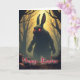 En gigantisk Påskhare med ljusröd ögon visas i en dyster skogsscen och utstrålar en hotfull närvaro. Det obarmhärtiga, tangerade grenar i träd och det diffusa, gulaktiga ljuset skapar en god atmosfär. Påskäggen är utspridda på marken, deras färgstarka mönster bildar en märklig kontrast till den hotfulla omgivningen. Hårdarna verkar både skrämmande och mystiska, som om det vore en varelse från en mörk Påsk-legend. I bild kombineras Påskharns traditionella symbolik med en skrämmande, fantasifull tolkning som både fascinerar och skrämmer.