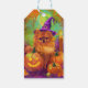Spooky Pommern Hund Halloween Witch och Pumpkin Presentetikett