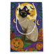 Spooky Siamese Cat Halloween Witch och Pumpkin