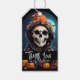 Spooky Skeleton med Evil Pumpkins Tack Presentetikett