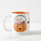 Spooky-söt personlig mugg för Halloween-kaffe, te och kakao! Börja din dag med skämtsöta viber med den här personligen Halloween-kaffe mugg! Det är perfekt att tillsätta charm till din choklad, te eller hett choklad. Det är ett vackert spöke i en häxhatt, en lekfull pumpor och en festande höst färg. Texten vid grund kan anpassas till vilken namn som helst, skapar den till en unik gåva av för barn, vänner, familj eller vem som helst som har kärlek Halloween. En roligt och ett praktiskt sätt att fira säsongen!