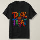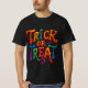 Spooky Trick or Treat Shirt V4, featuring a colorful Halloween design with the words "TRICK or TREAT". This Tee is perfect for adults looking to embrace the Halloween spirit and make a statement with their attire. Ideal for Halloween celebrations or costume parties.
