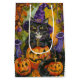 Spooky Tuxedo Cat Halloween Witch och Pumpkin
