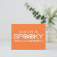 Ett vanligt och modernt vykort för taloky-typografi Halloween Hälsning i orange och vitt med coola och två visuella spöken som söker igenom ord "Spooky". Detta vykort för snyggt är ett underbart sätt att önska vänner och familj ett Happy halloween. Enkel att anpassa, lägg till din egen läsktext! Klicka på knappen "Anpassa" om du vill flytta designen inslag, ändra typsnitt eller färgen och lägga till/ta bort ytterligare text.