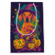 Förbered Halloween-andan med den här fantastiska designen som har en söt hund i en häxhatt omgiven av skrapade pumpor. Perfekt för att lägga till en aning pooky charm till ditt festliga firande.