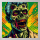 Halloween poster. Scary decututgående zombie i en popkonst tecknad bok stil ai-konst. Coola för Halloween eller någon som kärlek zombies.