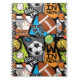 A bold, energetic sports collage featuring basketball, football, soccer, tennis, and baseball elements with dynamic typography like “Big Game,” “Goal Time,” and “Winner,” set in bright, high-contrast colors.