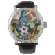 A bold, energetic sports collage featuring basketball, football, soccer, tennis, and baseball elements with dynamic typography like “Big Game,” “Goal Time,” and “Winner,” set in bright, high-contrast colors.