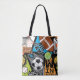 A bold, energetic sports collage featuring basketball, football, soccer, tennis, and baseball elements with dynamic typography like “Big Game,” “Goal Time,” and “Winner,” set in bright, high-contrast colors.