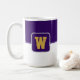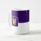 Kaffe mugg visas här med ett stil-färg-block med ett exempel på brev, anpassa och ändra färger och brev eller köpa som det är. Färg Lila, Vit Anpassa det här objektet eller köp som det är.
