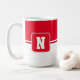 Kaffe mugg visas här med ett stil-färg-block med ett exempel på brev, anpassa och ändra färger och brev eller köpa som det är. Färg Red, White Anpassa det här objektet eller köp som det är.