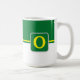 Kaffe mugg visas här med ett stil-färg-block med ett exempel på brev, anpassa och ändra färger och brev eller köpa som det är. Färg Grönt, Gult, Vit Anpassa det här objektet eller köp som det är.