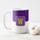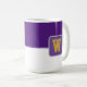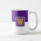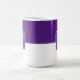 Kaffe mugg visas här med ett stil-färg-block med ett exempel på brev, anpassa och ändra färger och brev eller köpa som det är. Färg Lila, Vit Anpassa det här objektet eller köp som det är.