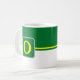 Kaffe mugg visas här med ett stil-färg-block med ett exempel på brev, anpassa och ändra färger och brev eller köpa som det är. Färg Grönt, Gult, Vit Anpassa det här objektet eller köp som det är.