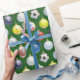 Julprydnadsföremål i bollar på en grönt som är texturerad.