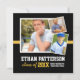 Perfekt för att visa upp din sons liv med en collage av foton från barndomen till nutid. Med sportig text är denna design perfekt för den examen som är idrottsman eller sportfan. Varje rad kan anpassas på baksidan för mångsidighet för att antingen vara en inbjudan till examensfest (som visas) eller enkelt ändras till ett enbart meddelande.
