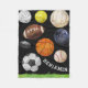 En beställnings- svart ullfilt som presenterar en variation av målade stilsportar, klumpa ihop sig. Objekten inkluderar en baseball, en fotboll, en volleyboll, tennisbollar, en hockeypuck, en fotbollboll, en volleyboll, en bowlingklot och en basket. In mot grunden tränga någon är en fläck för din eller ditt gåvamottagarenamn. Individbollarna är faktiskt löstagbara, så du kan tillfoga mer text till filten, om du behar. Ha roligt skapa och skapar den ditt eget.