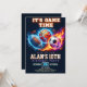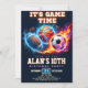 Set against a deep black background, the glowing "It's Game Time" headline captures the intensity of the big game. This invite is the ultimate choice for a multi-sport birthday party or any young athlete who loves basketball, soccer, and football. Customize the text to include your MVP's name, age, and party details for a truly epic kickoff!