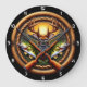 Fira naturens lockelse med Sportsman’s Heritage Trophy-klockan. Denna robusta och eleganta urmodell har en högupplöst grafik centrerad kring en majestätisk 10-poängare, flankerad av två hoppande svartabass mot en gyllene solnedgång. Fokuspunkten är förankrad med korslagda vintage-inspirerade gevär, som symboliserar traditionen av de stora vidderna. Hela scenen är placerad inom en flerskiktig cirkulär ram som mästerligt replikerar texturen av tjock, väderbiten nautisk rep och polerat mörkt trä. Medan konstverket fångar den dimensionella reliefen av handskurna element och naturliga fibrer, är detta en slitstark högupplöst grafisk applicering på en premium rund klockskiva. Den fungerar som en prestigefylld och manlig mitt