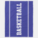 This sporty design features athletic white BASKETBALL text centered on deep blue background with sleek white edge stripes.