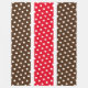 Den här djärva och sportiska designen av roligt har en bred, ljusröd mittpunkt i tävla rand, skisserad i vitt och åtskild av kakaobärda ränder i kant. Festive tiled white polka dots springa under hela konstruktionen.